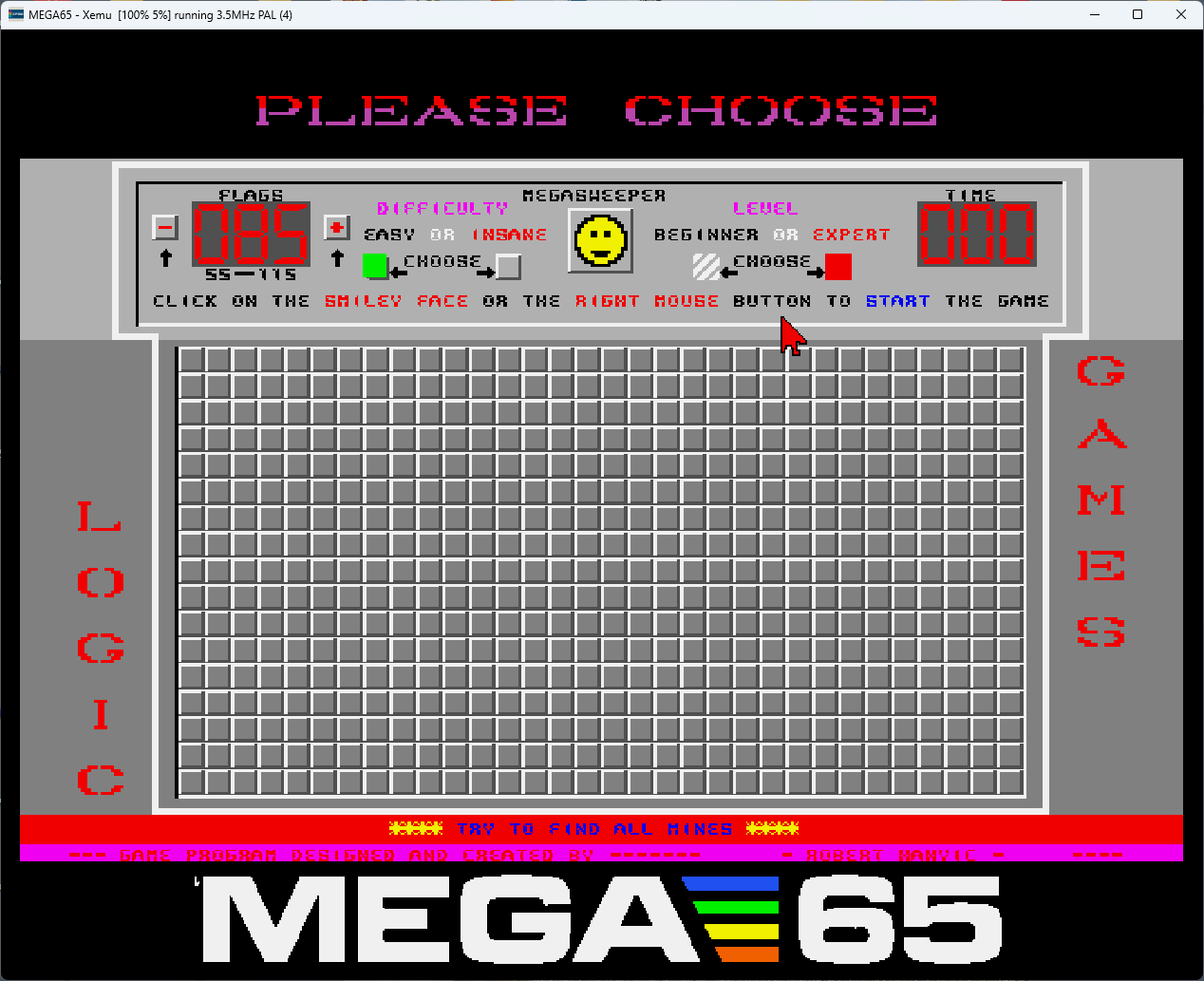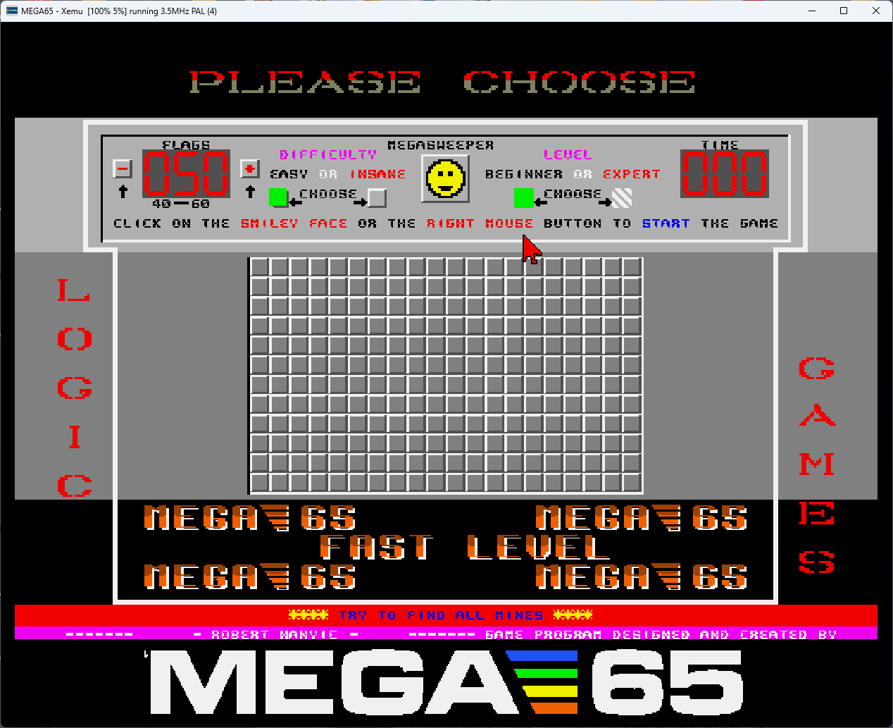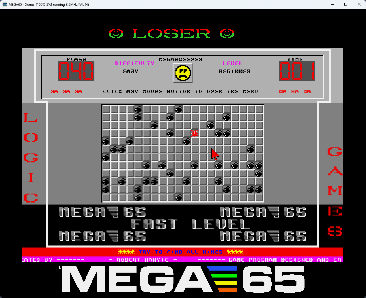 Megasweeper is a high-performance, polished logic puzzle specifically engineered for the MEGA65 written entirely in 100% Assembly. Forget the keyboard – this is a modern retro experience designed for pure mouse-driven precision and tactical depth.